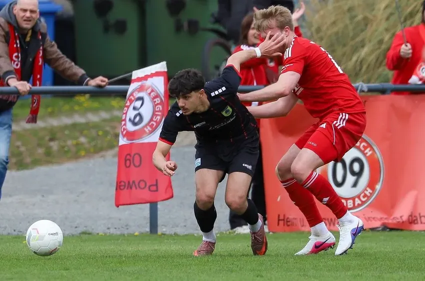 In der ersten Halbzeit zeigten wir uns äußerst effizient und nutzten unsere einzige klare Torchance zur Führung: Nach einer sehenswerten Kombination traf Jannis Kuckertz zunächst den Pfosten, ehe Samy Jaksic den Abpraller zur verdienten Führung verwertete (31.). Insgesamt entwickelte sich bis dahin eine chancenarme Partie, erst nach dem Rückstand kam Bergisch Gladbach besser ins Spiel. Doch wir hielten defensiv dagegen, und unser Torhüter Jonas Rifisch zeichnete sich mit einer starken Parade aus, während uns einmal auch die Latte rettete. Angetrieben durch unsere lautstarken Fans, die jeden gewonnen Ball, jede gute Szene mit Schlachtrufen feierten, ging unser Team unter großem Beifall in die Pause.